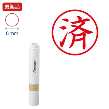 帳簿や出席簿などへの捺印シーンでよく使われるスタンプです。直径6ミリの小さな印面が簿記事務に最適。既成印面は47種類をご用意しています。インキは交換が可能なカートリッジ式です。